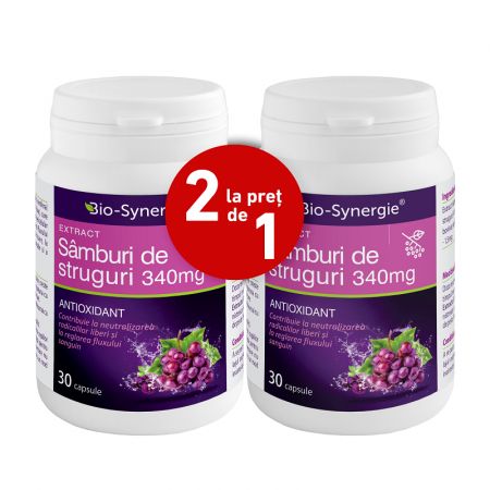 Pachet Extract de samburi de struguri 340mg, (2 la pret de 1), 30 + 30 capsule, Bio Synergie