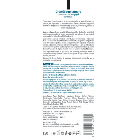 Cremă depilatoare cu extract de mușețel, 150 ml - Cosmetic Plant