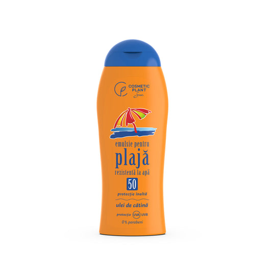 Emulsie plajă rezistentă la apă SPF50 cu ulei de cătină