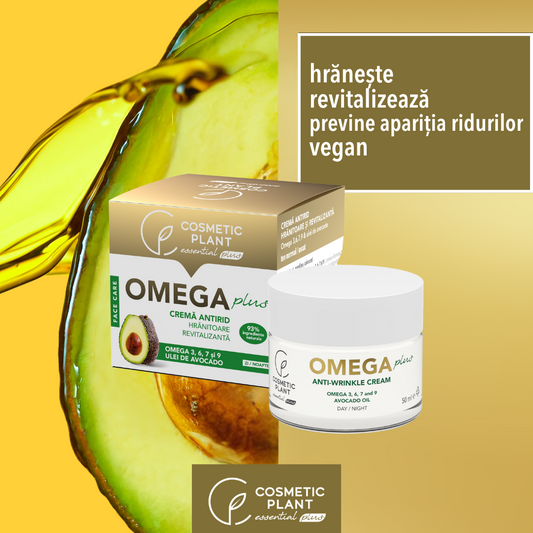 Cremă antirid hrănitoare și revitalizantă OMEGA Plus cu Omega 3, 6, 7, 9 & ulei de avocado 50ml, Cosmetic Plant
