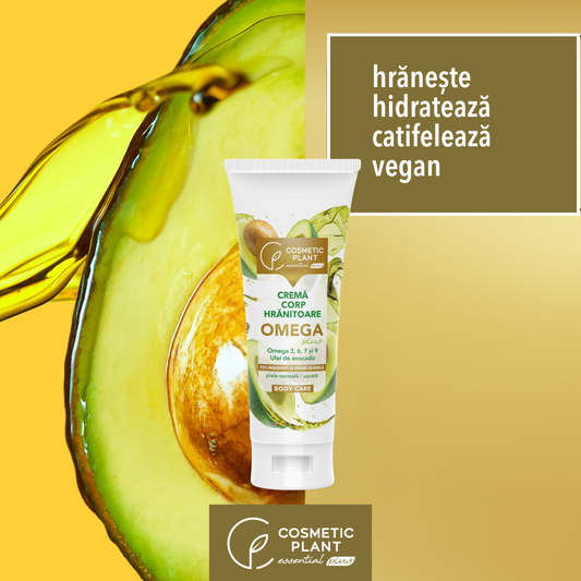 Cremă de corp hrănitoare OMEGA Plus cu Omega 3, 6, 7, 9 & ulei de avocado, 200ml, Cosmetic Plant