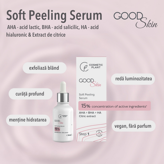 GOOD Skin - Soft Peeling Serum cu AHA+BHA+HA și Extract de citrice, 30 ml, Cosmetic Plant