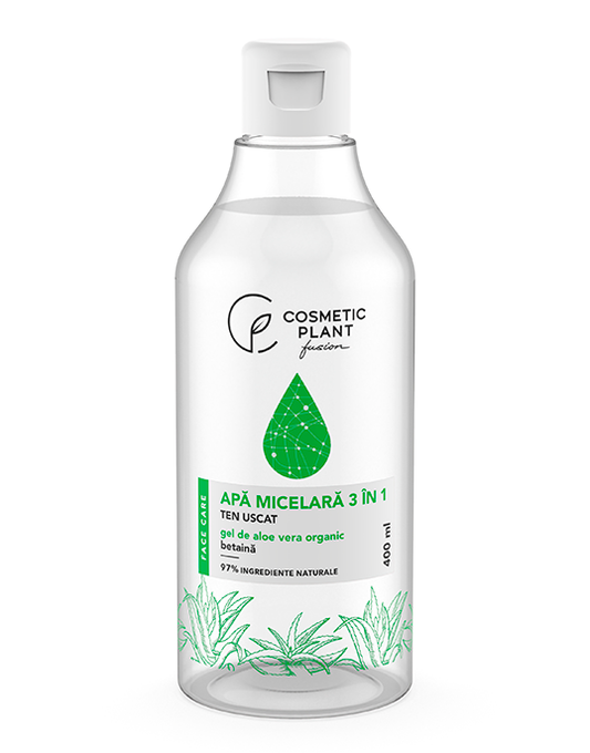 Apa micelara 3 in 1 cu gel de aloe vera organic si betaina pentru ten uscat, 400 ml, Cosmetic Plant