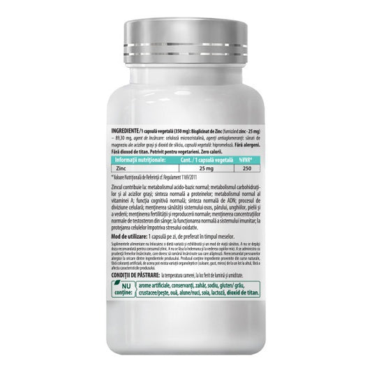 Zinc Bisglicinat (chelat) 25 mg biodisponibilitate ridicata