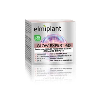 Crema de zi impotriva petelor pigmentare si antirid Glow Expert 4D, 50ml, Elmiplant