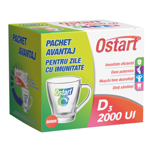 OSTART D3 2000 UI 60 cpr film + CANĂ OSTART CADOU