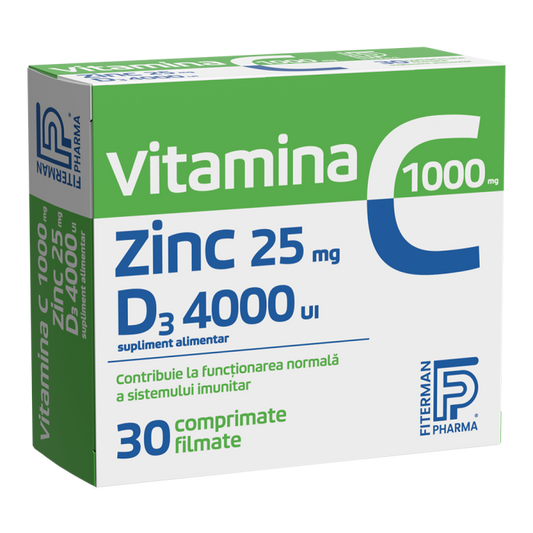 Vitamina C 1000 mg + Zn 25 mg + D3 4000UI, 30 comprimate filmate, Fitterman Pharma
