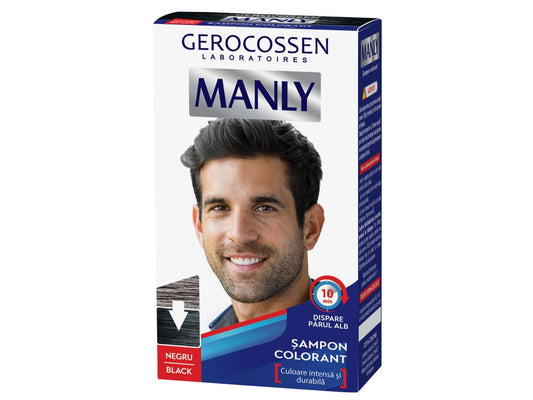 Sampon colorant pentru barbati, negru, Manly, 25 ml, Gerocossen