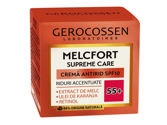 Crema antirid SPF10 55+ cu extract de melc, ulei de karanja, retinol Melcfort, 50 ml, Gerocossen