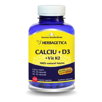 Calciu + D3 cu Vitamina K2, 120 capsule, Herbagetica