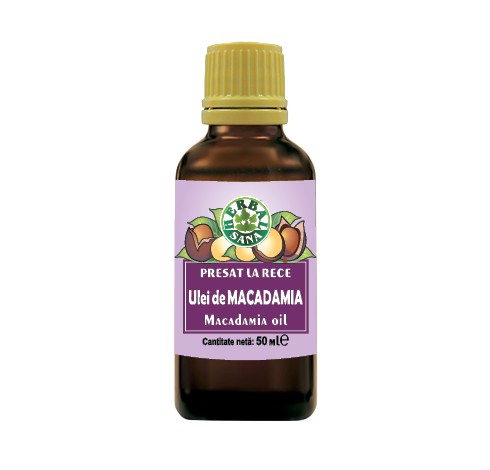 Ulei de Macadamia presat la rece, uz intern și extern, 50 ml, Herbal Sana