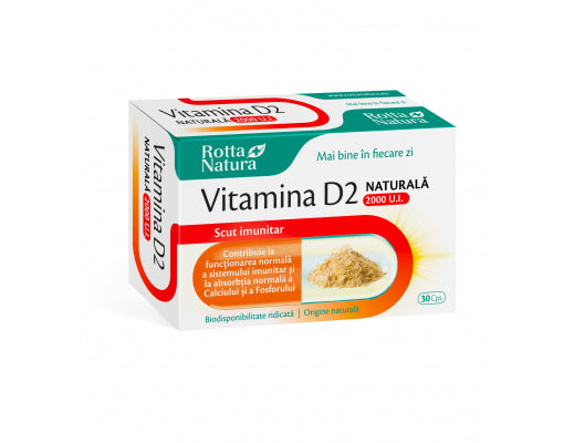 Vitamina D2 naturala, 2000 UI, 30 capsule, Rotta Natura