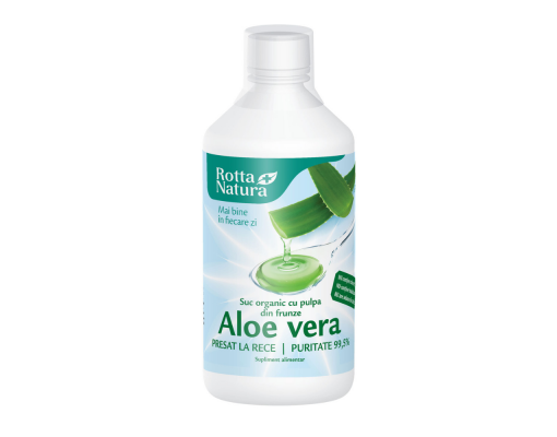 Aloe Vera suc organic cu pulpa, presat la rece, 1000 ml, Rotta Natura