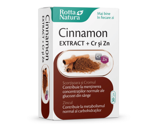 Cinnamon extract + Crom si Zinc, 30 capsule, Rotta Natura