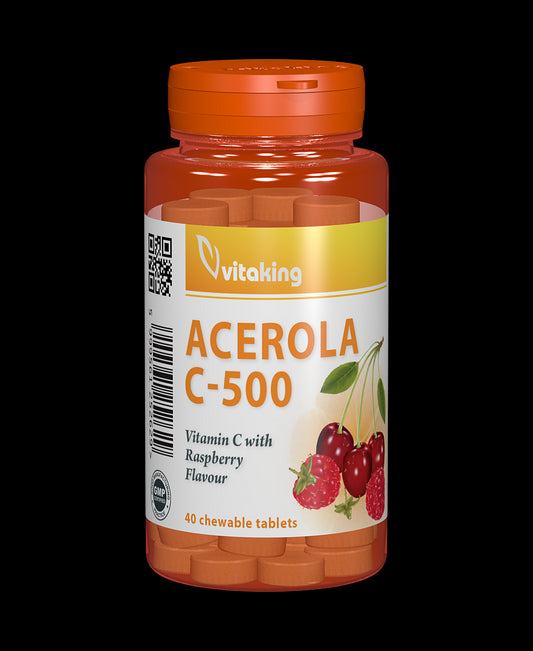 Vitamina C 500 mg cu acerola cu gust de zmeura - 40 comprimate masticabile