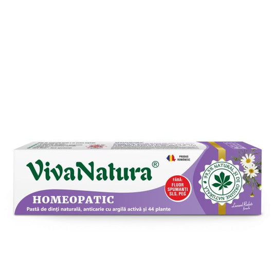 Homeopatic – pasta de dinti naturala 99,5% cu argila activa si 44 plante, fara fluor, 80 ml – Leonard Radutz formula – VivaNatura