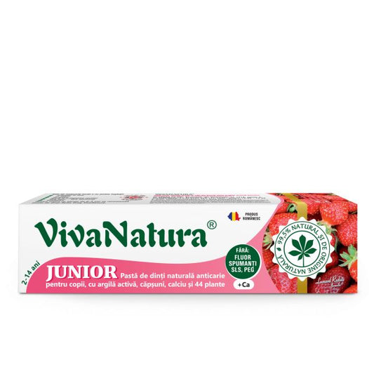 Pasta de dinti naturala pentru copii cu argila activa si capsuni Junior, 50 ml, Vivanatura