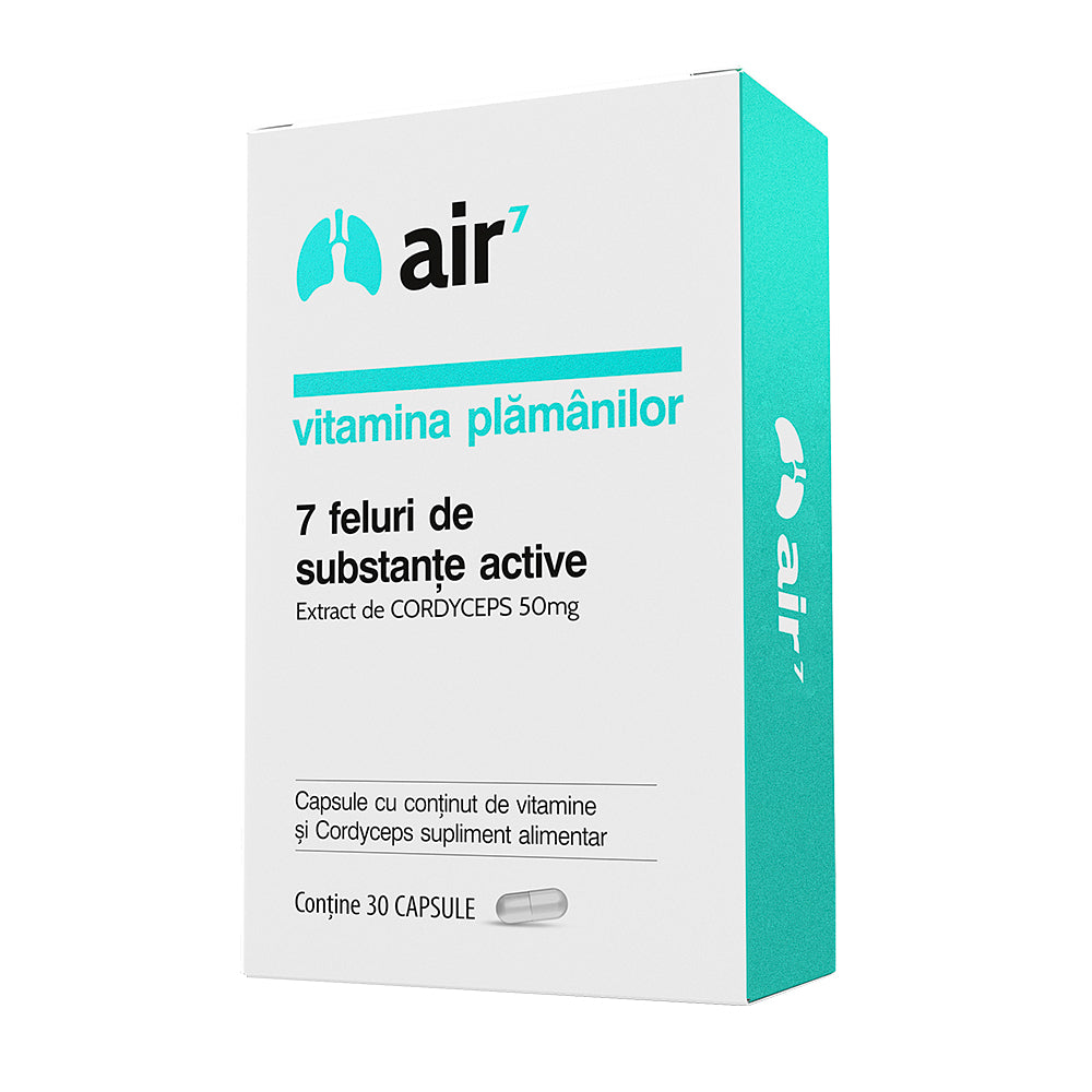 - Air7 poate contribui la intarirea sistemului imunitar, poate contribui la eliberarea de energie la nivel celular, poate ajuta la imbunataţirea capacitatii de utilizare a oxigenului in celule precum şi imbunatatirea circulaţiei sangvine;