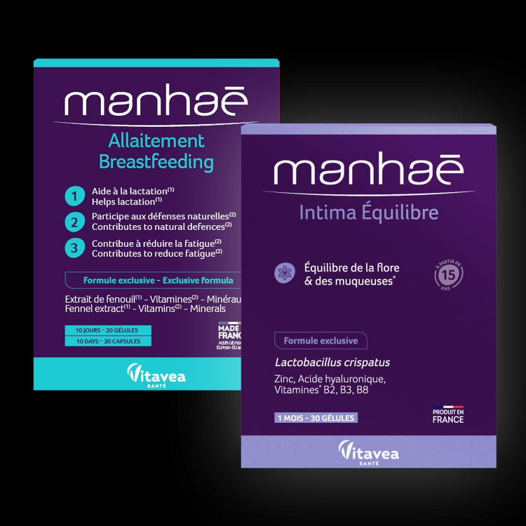 Manhaē Allaitement (alaptare) nu doar ca stimuleaza lactatia, dar previne oboseala mamei si ii asigura nou-nascutului nutrientii necesari pentru o dezvoltare armonioasa. Combina-l cu Manhaē Intima Ēquilibre pentru protectia mucoasei vaginale (preventia uscaciunii si a infectiilor, hidratarea mucoasei intime) pentru ca singura ta preocupare sa fie bebelusul tau.