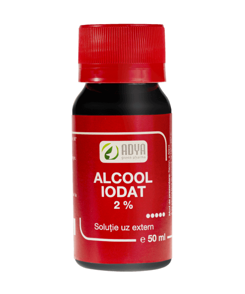 Alcool iodat 2% Adya Green Pharma este o solutie de uz extern utilizat datorita proprietatilor sale antiseptice si dezinfectante locale, antimicrobiene si antifungice.