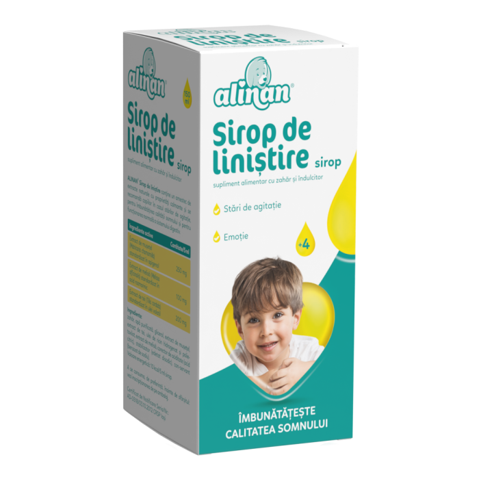 Alinan® Sirop de linistire este un preparat obtinut din extracte naturale standardizate, cu proprietati calmante, recomandat copiilor in cazul starilor de agitatie, pentru imbunatatirea calitatii somnului si pentru functionarea normala a sistemului digestiv.