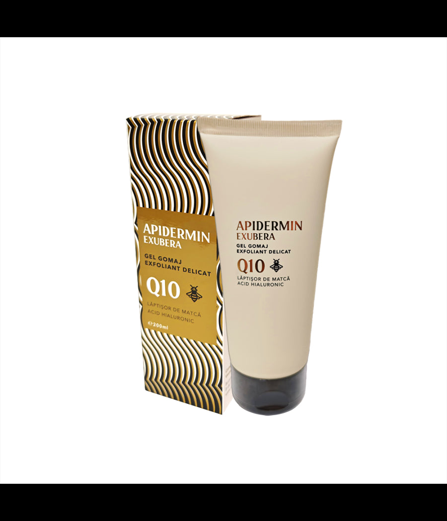 Exfolierea pielii reprezinta indepartarea celulelor moarte pentru a obtine o piele catifelata, intinerita si curata. Gelul de gomaj Apidermin Exubera este un exfoliant delicat recomandat pentru un ten mixt sau normal. Se aplica pe tenul demachiat si umezit, se evita zona ochilor si a buzelor si se maseaza aproximativ 20-30 de secunde si apoi se clateste foarte bine cu apa. Se poate folosi de 2-3 ori pe saptamana, de preferabil seara. Exfolierea nu este recomandata pe o piele iritata, cu lezini sau inflamata.