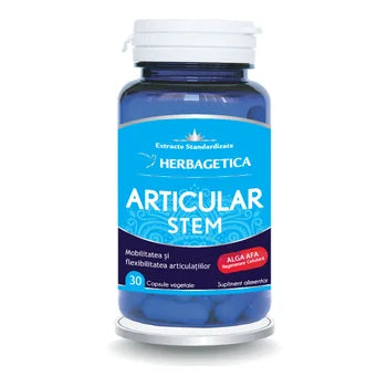 Articular+ Stem are o formula complexa dedicata pentru refacerea articulatiilor si redarea mobilitatii si flexibilitatii articulare. Extractele alese pentru formula Articular+ Stem intervin direct asupra formarii tesutului cartilaginos, reducerea inflamatiei, calmarea durerii si protejarea articulatiilor de la deteriorare.