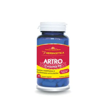 Formula complexa Artro Curcumin 95 are o eficacitate ridicata pentru sanatatea articulatiilor, garantata prin combinatia de Curcumin95 C3 Complex, boswellia serrata, urzica, gheara-diavolului, salcie, cartilaj de rechin, siliciu natural si piper negru, extracte naturale care redau mobilitatea si flexibilitatea articulara, calmeaza durerile si refac cartilajului articular.