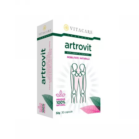 Artovit este un supliment eficient ce asigura un aport optim de substante nutritive necesare pentru buna functionare a articulatiilor. Cauza celor mai frecvente afectiuni articulare este degradarea cartilajului ca urmare a proceselor degenerative aparute odata cu inaintarea in varsta sau inflamatiile locale foarte dureroase. Artrovit ajuta la regenerarea tesutului cartilaginos prin continutul sau de glucozamin sulfat, MSM (metilsulfonilmetan) asociate eficient cu Siliciu. Aceste componente sunt esentiale pentru structura cartilajelor sanatoase. Siliciul din formula este extras din Coada Calului (Equisetum arvense), planta ale carei tulpini sunt bogate in acid silicic si saruri de bioxid de siliciu. Extractul din Boswellia contine principii active cu efect antiinflamator si antiartritic, iar extractul de Ghimbir controleaza raspunsul antiinflamator al organismului prin blocarea enzimelor implicate. Asocierea extractelor din ghimbir si Boswellia Serrata s-a dovedit eficienta in calmarea durerii si reducerea inflamatiilor in cazul bolilor reumatismale, bolilor artrozice, excrescentelor osoase. Artrovit prin complexitatea formulei sale ofera o nutritie adecvata cartilajelor, inlaturand simptomele de rigiditate si mobilitate limitata, precum si durerile inflamatorii.