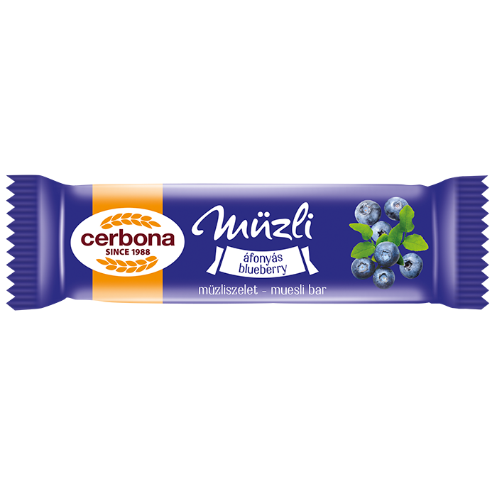 Batoanele muesli cu afine Cerbona sunt o sursa valoroasa de nutrienti si o sursa de fibre dietetice, astfel incat acestea pot fi bine integrate intr-o dieta sanatoasa. Batoanele muesli de afine sunt irezistibil de delicioase cu afine, prune, stafide, arahide, acoperire cu iaurt, miere, cereale si fulgi de ovaz presati. Puteti lua si manca cu usurinta batoanele muesli oriunde. incercati si celelalte arome!