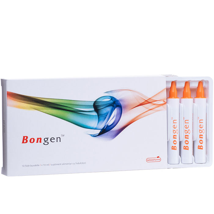 Bongen este o formula speciala sub forma de fiole buvabile, dezvoltata pentru sanatatea articulatiilor tale. Produsul contine ingrediente de inalta calitate care contribuie la sanatatea articulatiilor si sustin functionarea aparatului articular. Aceasta include colagen hidrolizat, acid hialuronic si vitamina C, care contribuie la formarea colagenului pentru functionarea normala a oaselor si cartilajelor.