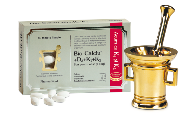 Bio-Calciu+D3+K1+K2 conţine nutrienţi importanţi pentru oase. Combinaţia de calciu, vitamina D3 si vitaminele K1 si K2 contribuie la menţinerea sanataţii sistemului osos. Dupa ingestie, calciul este ionizat in stomac, iar ionii de calciu sunt absorbiţi in intestin cu ajutorul vitaminei D3. Vitamina K este absorbita in intestinul subtire. Ea contribuie la coagularea normala a sangelui si la mentinerea sanataţii sistemului osos.