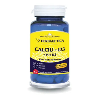 Calciu+D3 cu Vitamina K2 contine vitamine si minerale rezultate din surse 100% naturale, fara ingrediente de sinteza. Sursa naturala de Calciu Organic (Aquamin), obtinut din alge marine calcaroase, si a vitaminelor D3 si K2, garanteaza absorbtia ridicata si eficienta terapeutica...