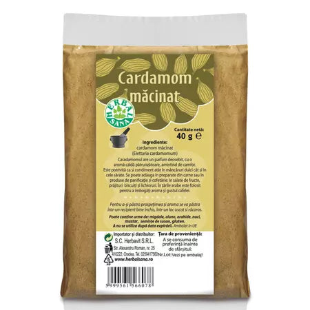 Cardamom macinat, 40 g, Herbal Sana Descriere: Cardamom măcinat, un condiment aromat cu note calde și pătrunzătoare, utilizat atât în preparate dulci, cât și sărate. Proprietăți: Are o aromă distinctă, amintind de camfor. Potrivit pentru preparate din carne, panificație și...
