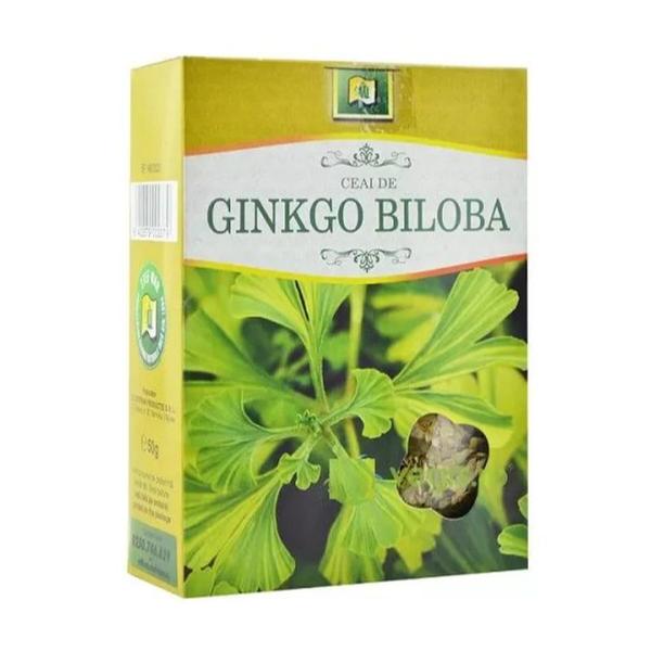Ceai de Ginkgo Biloba - Stef Mar, 50 g: supliment alimentar cu multiple beneficii pentru organism. Sustine circulatia sanguina la nivel cerebral si periferic(inlatura senzatia de maini si picioare obosite). Sustine functiile cognitive (imbunatateste memoria, capacitatea de concentrare). Util pentru protejarea vascularizatiei retinei si contribuie la tonifiera peretilor vasculari, la mentinere sanatatii si integritatii sistemului circulator. Este util si in reducerea starilor de oboseala si surmenaj.