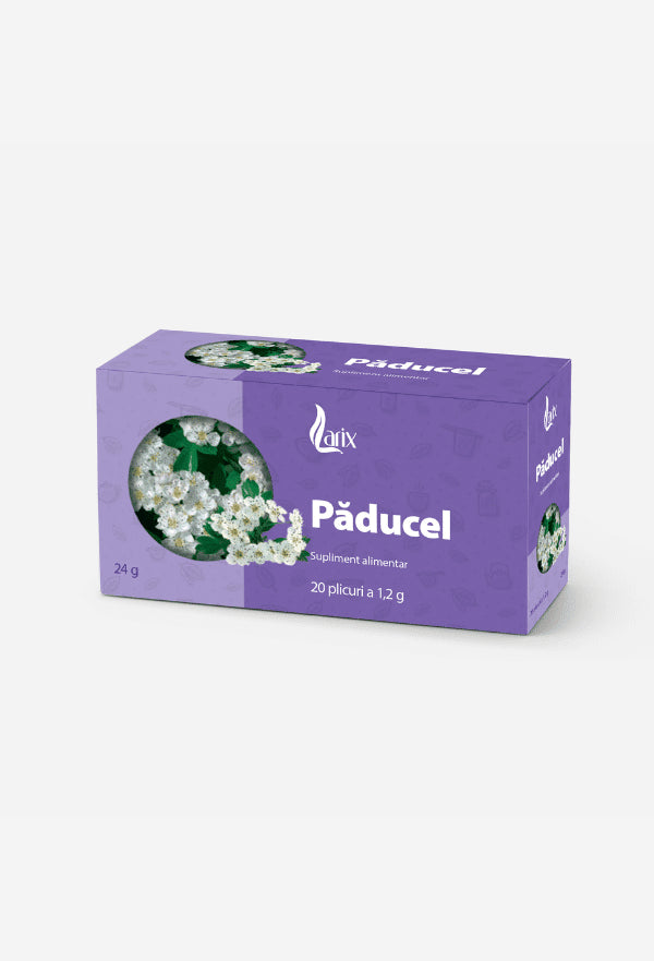 Ceaiul de Păducel de la Larix, sub formă de plicuri (20 doză/plicuri), este obținut exclusiv din frunze și flori de Crataegus monogyna, recunoscut ca tonic natural al inimii și vaselor de sânge. Această formulare este destinată susținerii sănătății cardiovasculare, prin efecte complementare legate de reglarea tensiunii și a nivelului colesterolului .