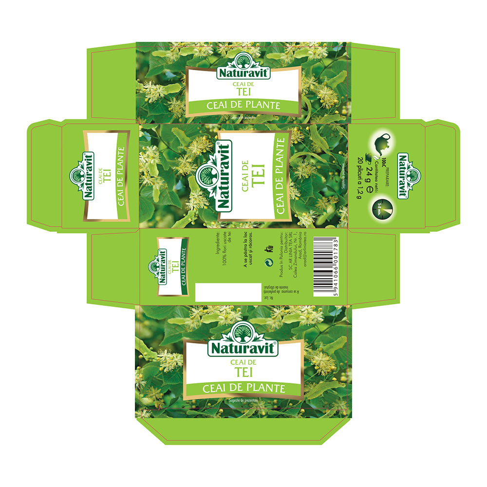 Ceai de tei, 20 plicuri, Naturavit [5941066001783] Proprietati:Este folosit in hipertensiune arteriala, poate produce vasodilactatie, este un adjuvant excelent pentru relaxare, are efect emolient si poate asigura un somn linistit. Poate combate agitatia si nervozitatea. Mod de preparare:Peste un plic...