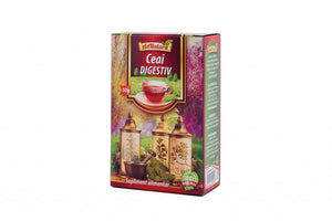 Ceaiul Digestiv este recomandat pentru: Sustinerea sistemului digestiv, stimularea digestiei, a secretiei gastrice, mentine functionarea sistemului digestiv la parametrii normali. Ajuta la eliminarea disconfortului gastric determinat de gazele abdominale, de crampe si de hipersecretia gastrica si biliara. Stimuleaza digestia greoaie....