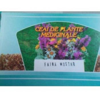 Compozitie: faina mustar. Principii active: mucilagii, ulei gras,substante de natura proteica, substante minerale Actiune: laxativa, calmanta, cicatrizanta, antimicrobiana, antiinflamator Mod de preparare:-cataplasma - 0,50g, faina de mustar se amesteca cu apa calduta pana se formeaza o pasta (nu se intrebuinteaza apa fierbinte).Se pune...