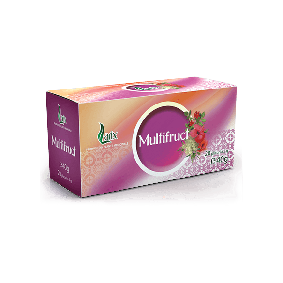 Ceaiul Multifruct de la Larix este o infuzie naturală, creată dintr-o combinație echilibrată de fructe și flori, apreciată pentru gustul său plăcut și efectele benefice asupra organismului. Acest ceai oferă o băutură revigorantă, ideală pentru momentele de relaxare sau ca înlocuitor al băuturilor dulci.
