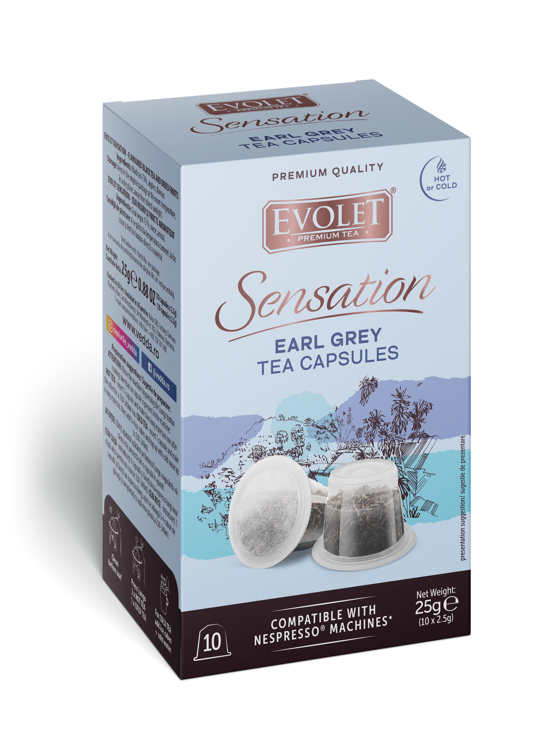 Ceai Negru Earl Grey Capsule Evolet Sensation, Cutie cu 10 capsule.