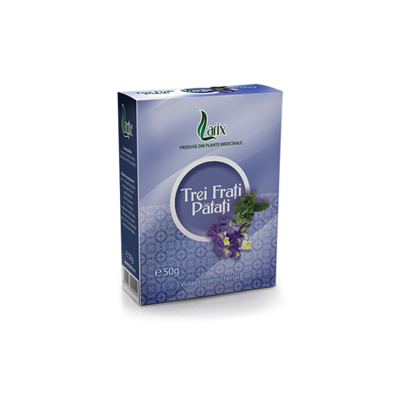 Mod de prezentare: O cutie conţine 50g ceai. Compozitie: Violae tricoloris herba (iarbă de trei fraţi pătaţi). Indicaţii: Pentru tratamentul diferitelor alergii ale pielii, iritaţiilor, urticariei, coşurilor. Contraindicaţii: Nu are. Mod de administrare: La 1-2 linguriţe produs se adaugă 200ml...