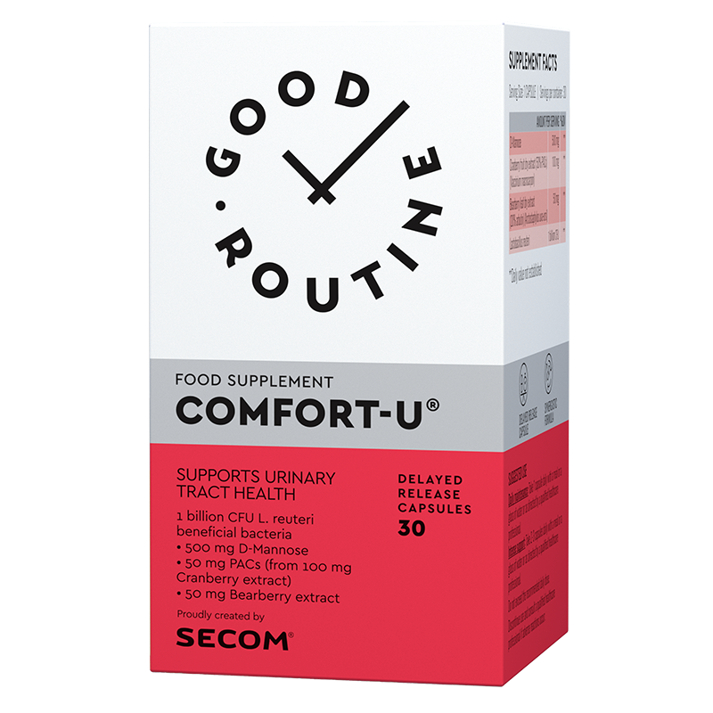 Te-ai gandit ca avantajele sucului de merisor pot fi obtinute fara aport suplimentar de zahar si calorii?Comfort-U® reuneste intr-o singura capsula extractele standardizate din Merisor si din Strugurii-ursului cu D-manoza si tulpina Lactobacillus reuteri pentru mentinerea confortului de la nivelul aparatului urinar.