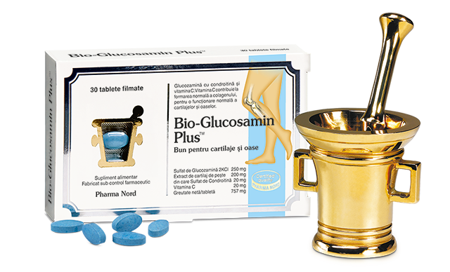 Bio-Glucosamin Plus este un supliment alimentar care se prezinta sub forma unor tablete filmate, fiecare conţinand 250 mg de Sulfat de Glucozamina, 200 mg de Extract de Sulfat de Condroitina si 20 mg de vitamina C.