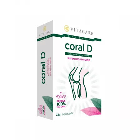 CORAL D reprezinta o sursa naturala de calciu din corali şi minerale asociate, imbogaţita cu magneziu şi vitamina D. Aceasta combinaţie unica poate fi utila tuturor acelora care doresc sa aiba un sistem osteoarticular puternic si sanatos.