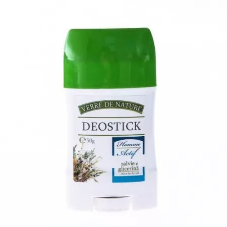 Deostick Homme Actif, 50 g, Verre de Nature Cu extract natural de salvie, glicerina, provitamina B5. Extractul de salvie asigura o protectie continua timp de 24 de ore, reduce transpiratia si impiedica aparitia mirosului neplacut. Proprietati:reduce transpiratia.impiedica aparitia mirosului neplacut....