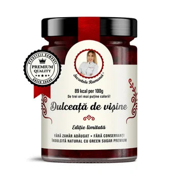 Ingrediente: Visine (79%), Siropul Secret (agave din sursa organica si extract de Stevia), fibre din radacina de cicoare, Green Sugar Premium, pectina, pudra de lamaie.