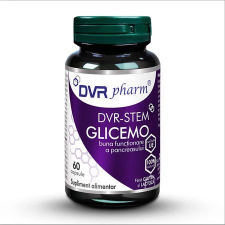DVR-Stem Glicemo contine extract de castravete amar tibetan (Momordica caranthia) si Gymnema (Gymnema sylvestris), care stimuleaza activitatea normala a pancreasului si mentin nivelul normal al glicemiei. Aceasta, in timp ce frunzele de maslin si de anghinare normalizeaza colesterolul si trigliceridele. Prin continutul sau de laptisor de matca, cu efect de stimulare a celulelor stem adulte, ajuta la mentinerea si refacerea unor tesuturi afectate de afectiunea diabetica.