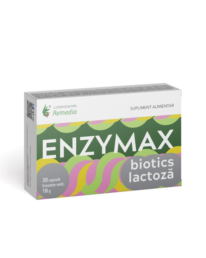 Compozitie: capsula (600 mg): ingrediente active: lactaza 10.000 ALU/g, obtinuta din Aspergillus Oryzae – 225 mg; DIGEZYME EC (Alfa-amilaza min. 24.000DU/g, proteaza min. 6.000 PC/g, celulaza min. 1.100 CG/g, lactaza min. 30.000 ALU/g, lipaza min. 200 FIP/g) – 75 mg; extract 18:1 din radacina de ghimbir (Zingiber officinale) standardizat in min. 5% gingeroli – 10 mg; Lactobacillus Fermentum – 200×109 CFU/g – 2 mg; Lactobacillus Casei – 400x109CFU/g – 1 mg; Bacillus coagulans – 100x109CFU/g – 0,5 mg; Bifidobacterium Longum -100x109CFU/g – 0,4 mg; Bifidobacterium Infantis – 100x109CFU/g – 0,25 mg; Lactobacillus Acidophillus – 200x109CFU/g – 0,25 mg; Lactobacillus Plantarum – 500x109CFU/g – 0,25 mg; Lactobacillus Reuteri – 200x109CFU/g – 0,25 mg; Bifidobacterium Bifidum – 200x109CFU/g – 0,25 mg; Lactobacillus Paracasei – 400x109CFU/g – 0,25 mg; Bifidobacterium Breve – 300×109 CFU/g – 0,25 mg; Bifidobacterium Lactis – 500x109CFU/g – 0,1 mg si Lactobacillus Rhamnosus – 500x109CFU/g – 0,1 mg si ingrediente inactive: capsula (hidroxipropilmetilceluloza), amidon de porumb pregelatinizat (agent antiaglomerant), lactoza monohidrat (agent de incarcare), talc, amidon de porumb (agenti antiaglomeranti), celuloza microcristalina (agent de incarcare).