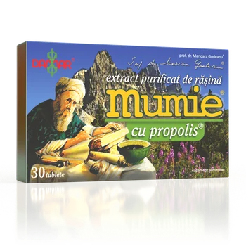 Rasina Mumie - in compozitia sa intra un intreg complex de substante organice si minerale (intre 25 si 40): produse de descompunere a compusilor polimoleculari (acizi zoomelanici, acizi humici, acid benzoic, axalic), aminoacizi (fenilalanina, alanina, arginina, tirozina, lizina, serina, valina, metiomina, glicina, acid aspartic, acid glutamic) si alti acizi, terpenoide, steroizi vegetali, vitamine din grupa B si P, fragmente de molecule polifenolice si alti compusi, si de asemenea macro- si microelementele: calciu, magneziu, sodiu, potasiu, etc.